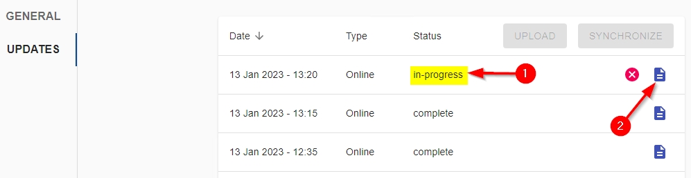 Clicking the icon marked (2) above will show the progress of the synchronization process: