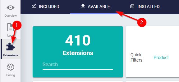Use the Available Extensions panel to find and select the custom extension for installation and inclusion in your application: