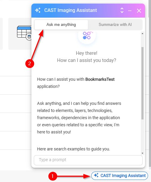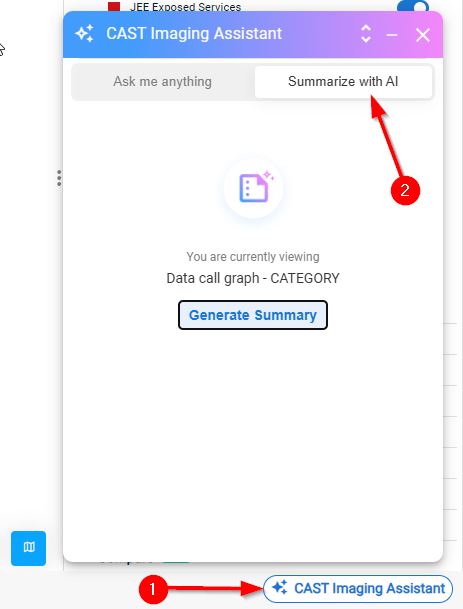CAST Imaging integrates with AI technology to provide an automated AI driven explanation of objects materialized during an application analysis. You can find out more details about using AI services in Leverage AI services.