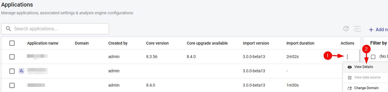 This section explains the Details section, providing information about specific applications. This option can be accessed by selecting the application then using the Actions menu: