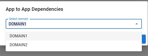 - App to App Dependencies - a domain selector will be displayed when attempting to access the App to App Dependencies feature and the user has been assigned permission to access two or more domains: