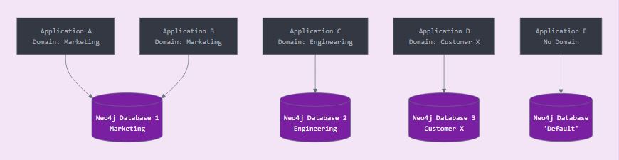 When you enable domain mapping, each domain is mapped to its own dedicated Neo4j database (“tenant”) for storing imaging-viewer results. Applications assigned to a domain store their results in that domain’s database, while unassigned applications continue using the “default” database: