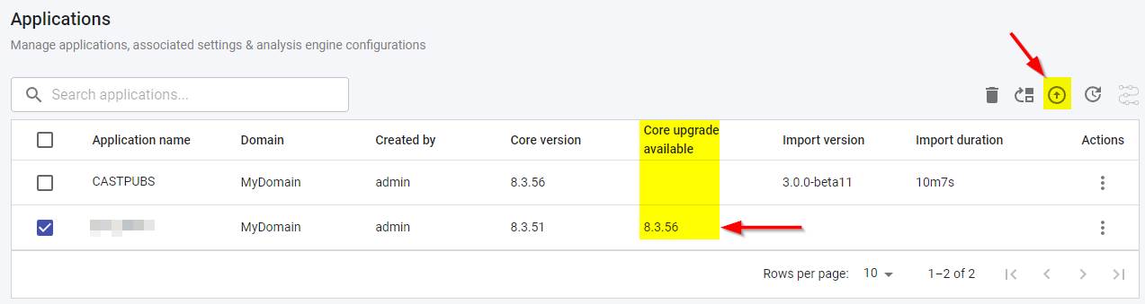 Use the icon highlighted in the image at the top of this page, or use the Upgrade Application option: