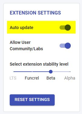 Using the extension Auto Update setting
