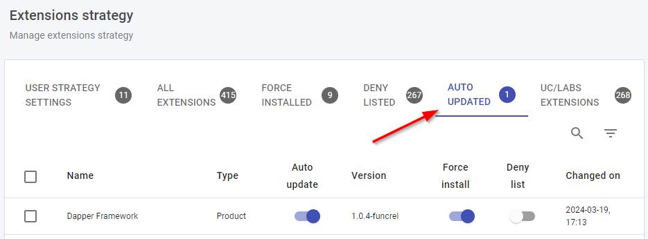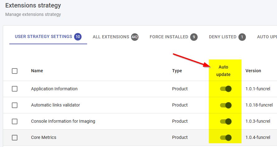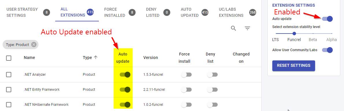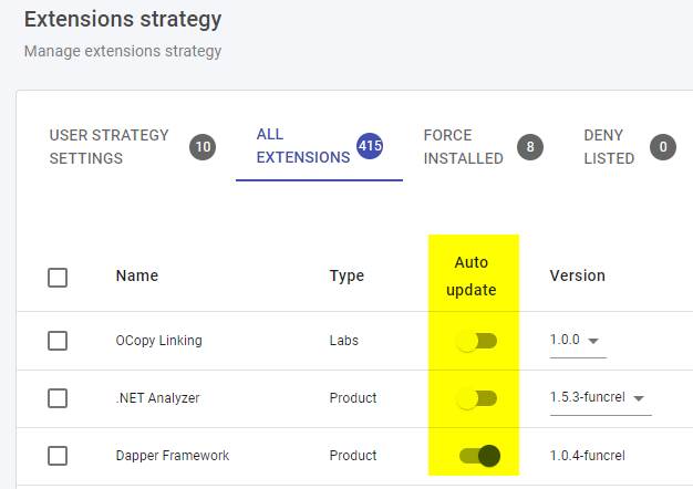 There are two extension** Auto Update** settings available for use: