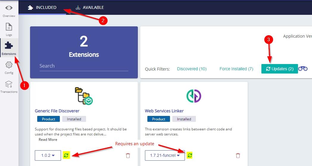 Note that it is possible to run the update extension job as part of a new analysis on existing source code if required, via the “advanced” Update Extensions option available in the Application Overview panel in the Run Analysis section.