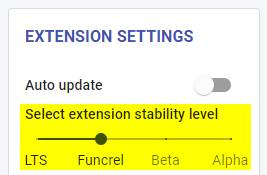 All lists of extensions will update and follow the chosen Stability Level, for example: