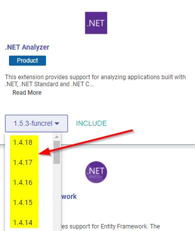 When looking at the Available Extensions panel, only extensions whose version status matches the strategy chosen at global level will be available for selection - in the image below, Funcrel, Beta and Alpha extensions are no longer available since the strategy has been changed to LTS only: