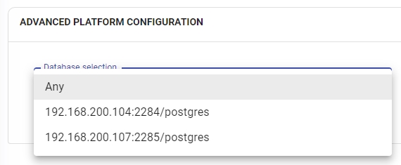 This panel lists all the CAST Storage Service/PostgreSQL instances that are available to your node instances. After installation, one instance will be listed (the instance configured during the installation process (Microsoft Windows) or provided automatically (Linux via Docker)) and this will be used to store all analysis results as well as persistence data.