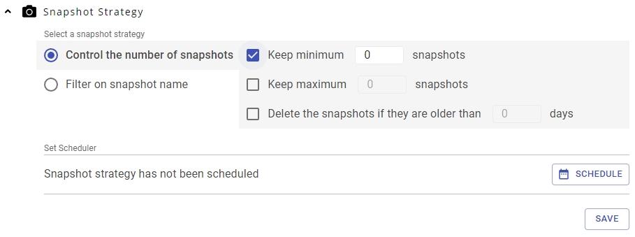| Keep minimum X snapshot(s) | Configure a minimum number of snapshots to retain for any given application. |