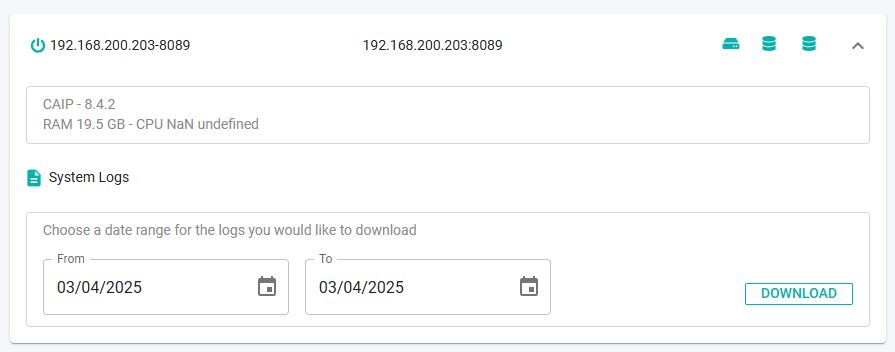 Use this option to download the node service logs (i.e. the %PROGRAMDATA%\CAST\Imaging\CAST-Imaging-Analysis-Node\logs\analysis-node.log file) for the current node.