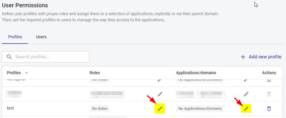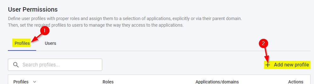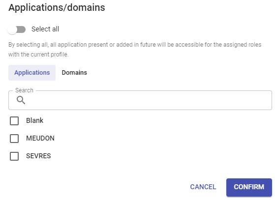 Then assign your required roles and/or applications/domains to your new profile: