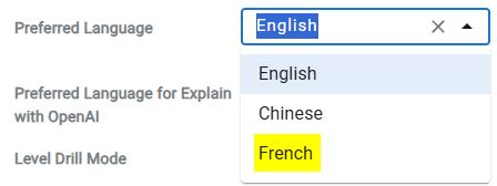 This option does NOT update language found in your results data - only labels, buttons and other items in the UI are displayed in the chosen language.