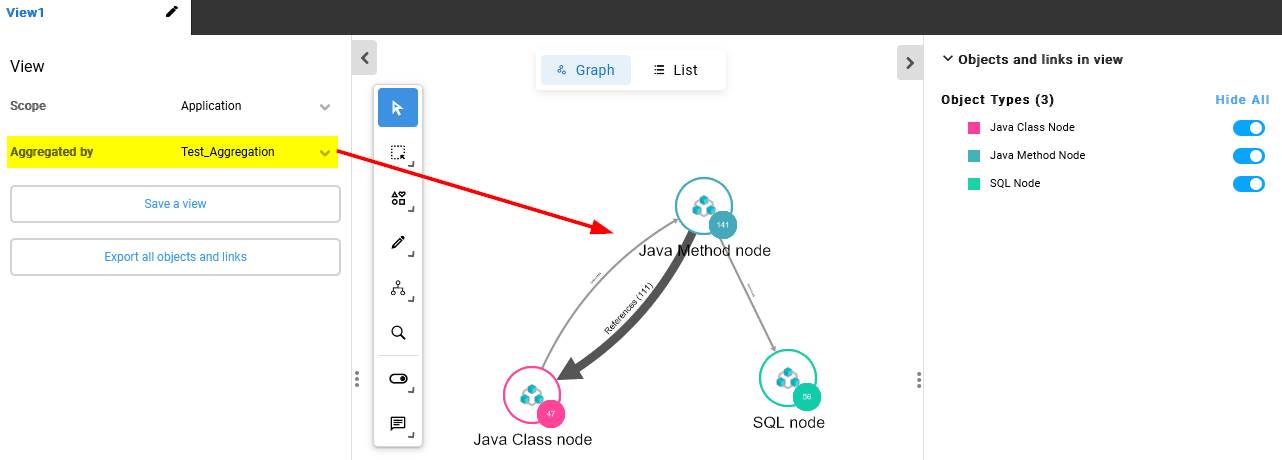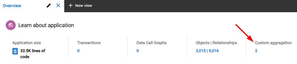Custom aggregations are dynamic - this means that the objects they display will automatically update when the application is re-analyzed and new objects are identified. For example, if the custom aggregation contains a custom node that captures Java Methods and the application is re-analyzed and new Java Methods are identified, then these objects will be automatically displayed in the custom aggregation. This behaviour was not present in previous releases (i.e. the custom aggregation remained static and was never updated with new objects identified in a new analysis).