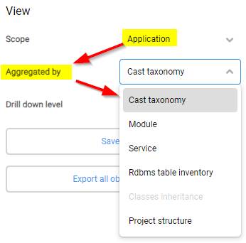 When consulting your results you can choose how your application is displayed using one of the default “perspectives/aggregation modes” available out of the box (depending on the perimeter/scope you choose) - these default modes are explained in User Interface Reference: