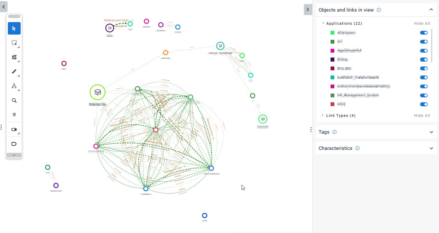 Out-of-the-box, the view will be empty, even if applications have been fully analyzed or imported into CAST Imaging already. interactions between the applications must therefore be “generated” before any application will be listed - this is a manual action which must be performed by a user with the Administrator role - you can find out more about this in Configuring App to App Dependencies. The generation process is fully configurable and applications can be excluded or included (via the UI or by leveraging automatic object name based rules).