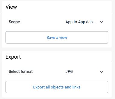 - the left-hand panel provides options to save the view and/or export to an external file (