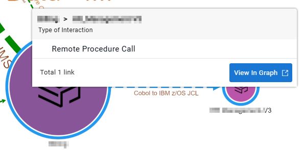Clicking an interaction (like in any other view in CAST Imaging) will display a popup providing the number of interactions and the ability to drill down and visualize the interactions themselves: