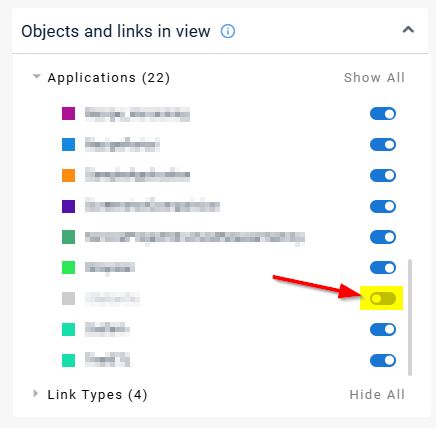 - Applications can be displayed or hidden using the toggle in the right panel:
