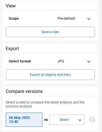You can also save this information as a view in order to plan the update, use the export feature or compare the objects with a previous analysis state: