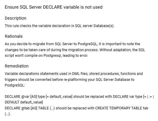 Checks are available for the following on-premises to cloud migration paths (via Amazon Web Services (AWS), Microsoft Azure or Google Cloud Platform (GCP)), typically focusing on data type, object type and syntax remediation: