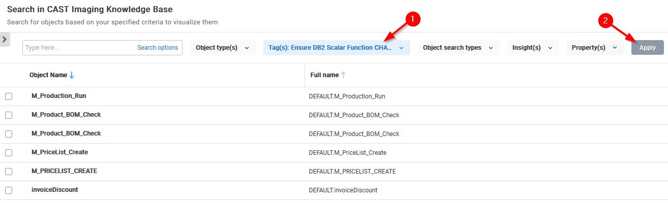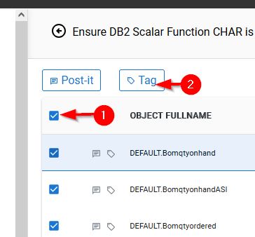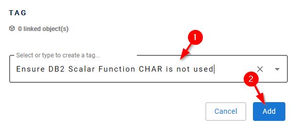 Then add an appropriate tag: in this example we have tagged them with the name of the check “Ensure DB2 Scalar Function CHAR is not used”: