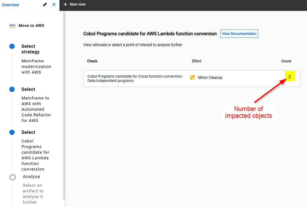 | 1 | View Documentation | Displays an explanation about the check that has been selected, together with a rationale (explanation of why the check is important) and a remediation (explanation of how to update the object in preparation for moving to cloud), e.g.:![]() |