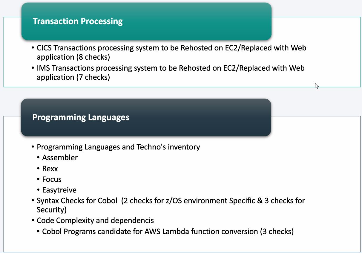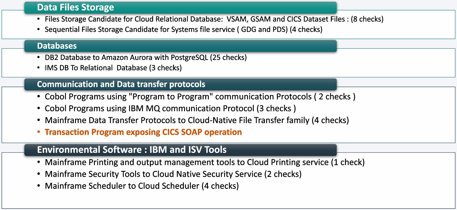 Typically, checks are provided for the following types of technologies where modernization (migration to cloud) is attractive: