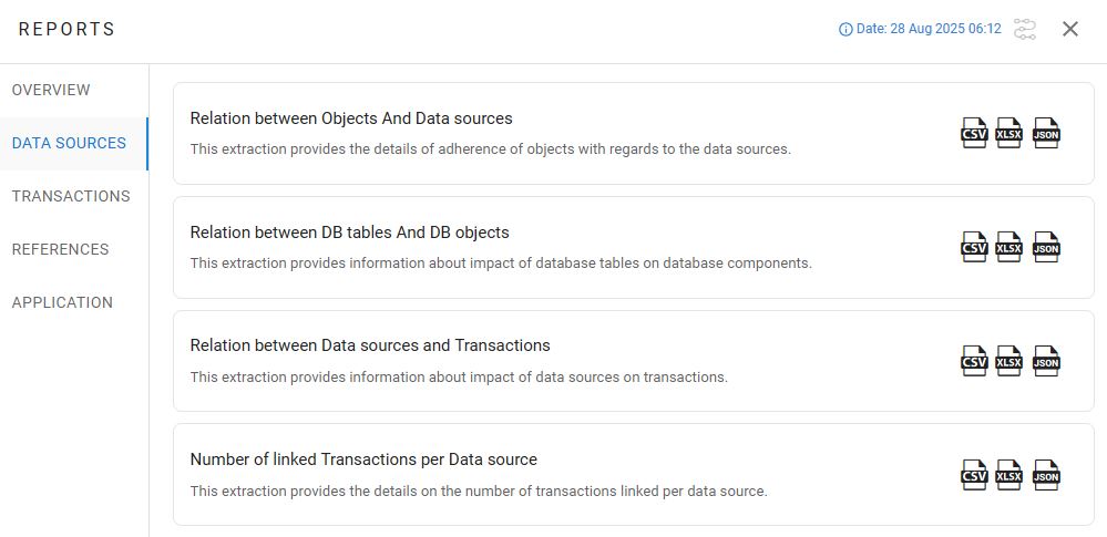 CAST Imaging provides several “built-in” reports which you can download in .csv, .xlsx and .json format: