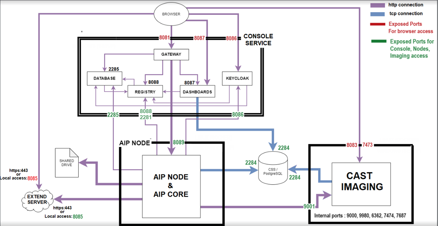 - CAST Storage Service / PostgreSQL can be installed on the AIP Node instance or on a separate and dedicated server (recommended).