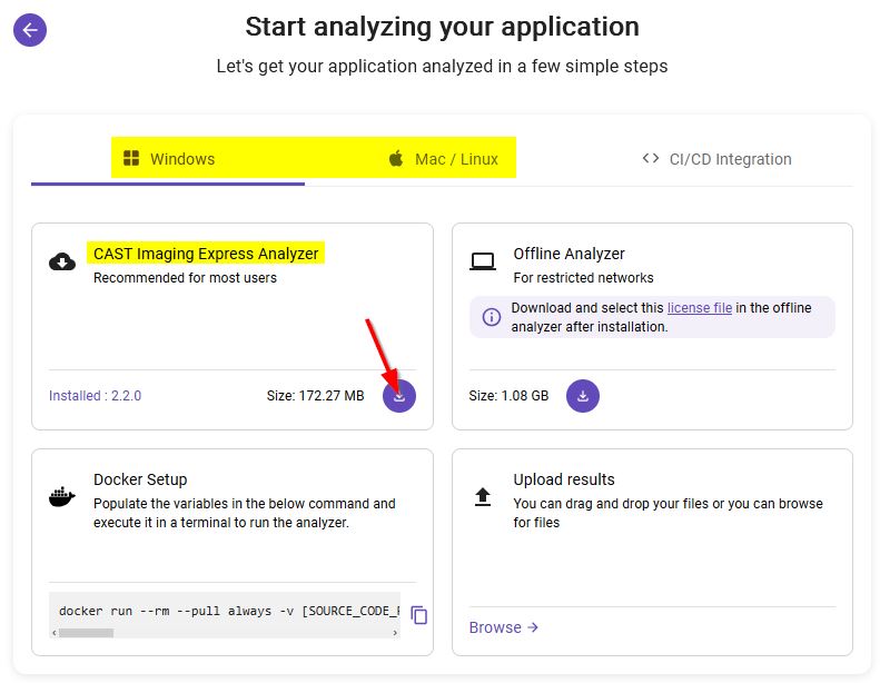 - Download, install and run CAST Imaging Analyzer on your local machine, for example for Microsoft Windows: