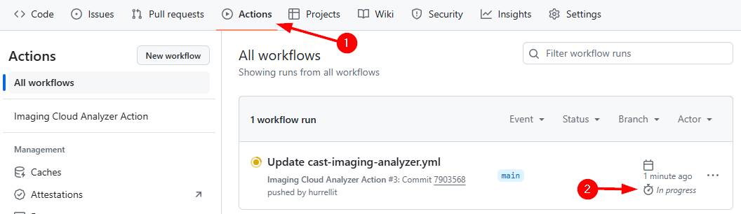 Using the GitHub Actions feature effectively replaces the CAST Imaging Analyzer tool that you would normally download to your local machine to perform the required actions.