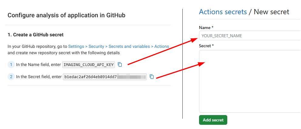 Create a new secret using the information provided to you in CAST Imaging Express (this links your source code to the application in CAST Imaging Express):