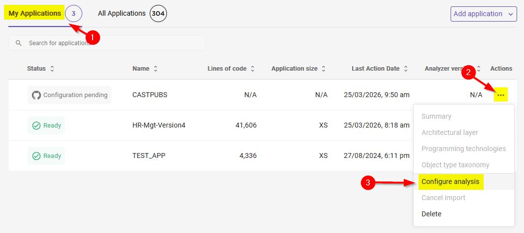In your CAST Imaging Express account, click Add Application > Via GitHub Actions: