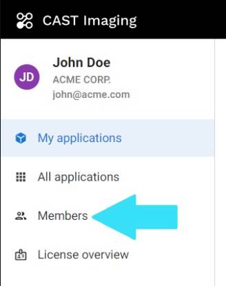 A user with the “administrator” role has permission to invite additional users to CAST Imaging on Cloud. The first user in any organization will automatically have the “administrator” role and can therefore grant access to other users. To invite additional users to an organization, the company administrator must follow these steps: