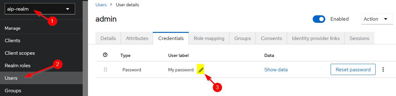 adminuser in the list (it should be the only one) - click the “pencil” icon in the