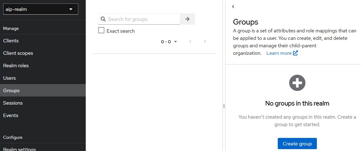 Local groups allow you to group together multiple users and then apply permissions to the group, rather than to individual users. Firstly, ensure you are working in the aip-realm realm: