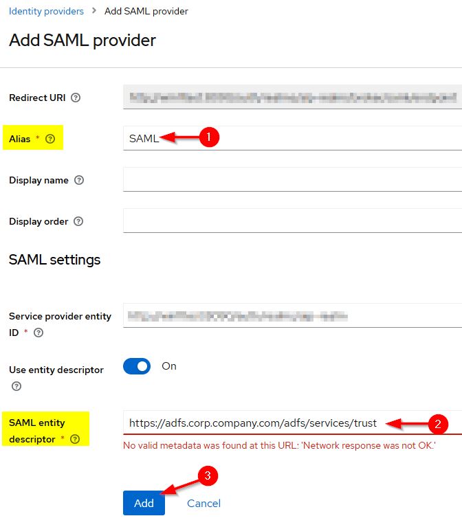 Aliasif you want to customize the provider settings - Enter the IDP metadata URL into the