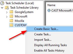 The script can be set to run automatically on machine reboot via a Microsoft Windows Scheduled Task using the Create Basic Task option: