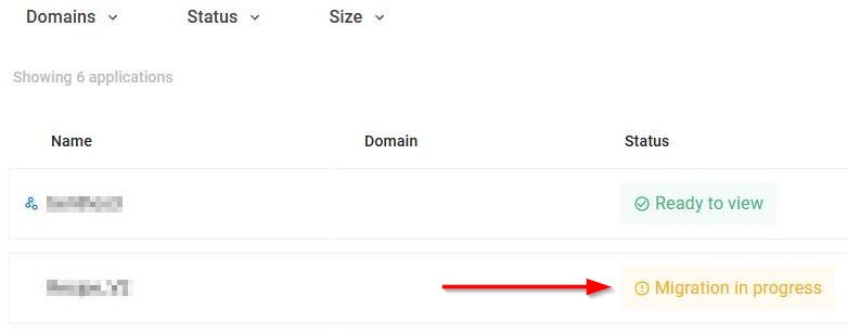 The status Migration in process in the Application landing page - you can still view their results if required by clicking the status, but you will be informed that to finalize the migration, you will need to complete additional steps - see What’s next?: