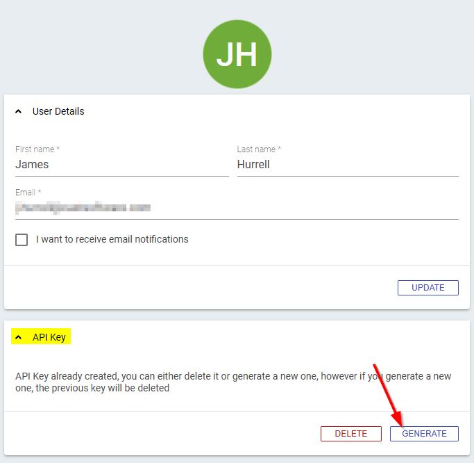 A CAST Imaging v3 API key - you can obtain this by clicking the user icon in the top right corner of the screen and selecting Profile:![]() ![]() |