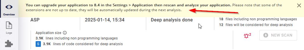 | EXTENSIONS THAT WILL BE UPDATED AFTER RESCAN | This column shows any extensions that will be updated to the latest compatible release after a subsequent rescan of the application. |