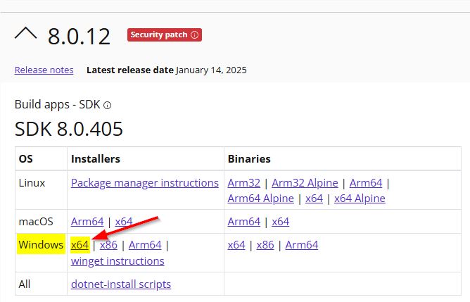 | ≥ 1.28.x | .NET 8.0.410 (SDK) | https://dotnet.microsoft.com/en-us/download/dotnet/8.0 ![]() |