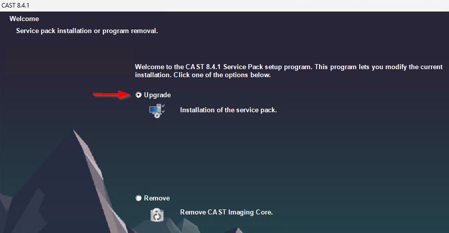 setup.batfile with elevated permissions (right click,Run as administrator) at the root of the unzipped files and follow the interactive installer. - the installer will detect the existing release installed on the machine - ensure that the Upgrade option is selected in the installer wizard: