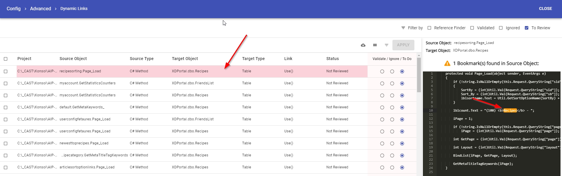 The process of reviewing Dynamic Links is as follows. Ensure that the filter is set to To Review: