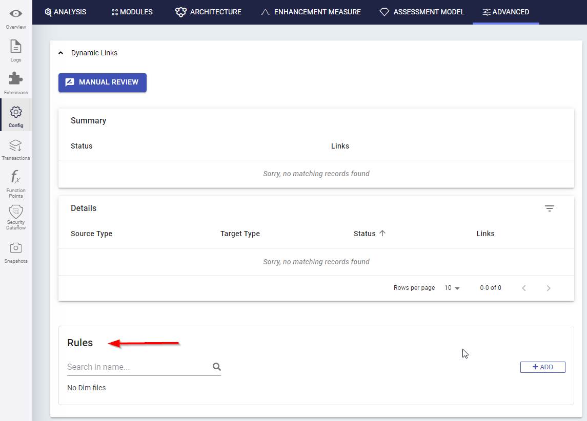 Application analysis configuration - Config - Advanced - Dynamic Links