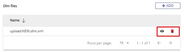 The DLM.XML files will then be visible in the list. Note that you can use the eye icon to view the content of the DLM.XML file and the trash icon to delete it: