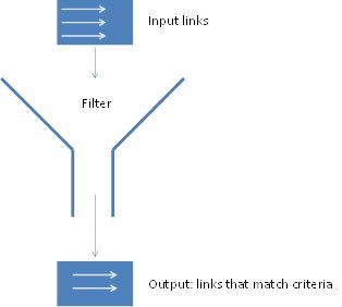 As described previously, a filter is an operator that selects links that match criteria. Filters are piped together in order to compose the body of a rule. The final result will be tagged as validated or ignored.