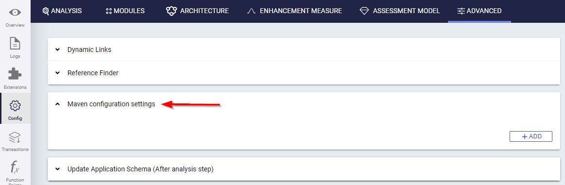 Application analysis configuration - Config - Advanced - Maven configuration settings