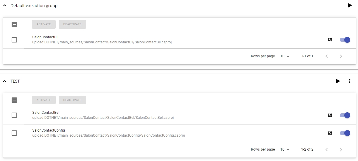 To customize Execution Groups, you need to have at least two Analysis Units present in the version for the given technology. The example below shows one Analysis Unit in a default Execution Group (Default execution group) and two Analysis Units that have been moved into a custom Execution Group (TEST):